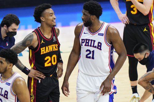 John collins would very much like to dunk on joel embiid whenever he next has a chance.